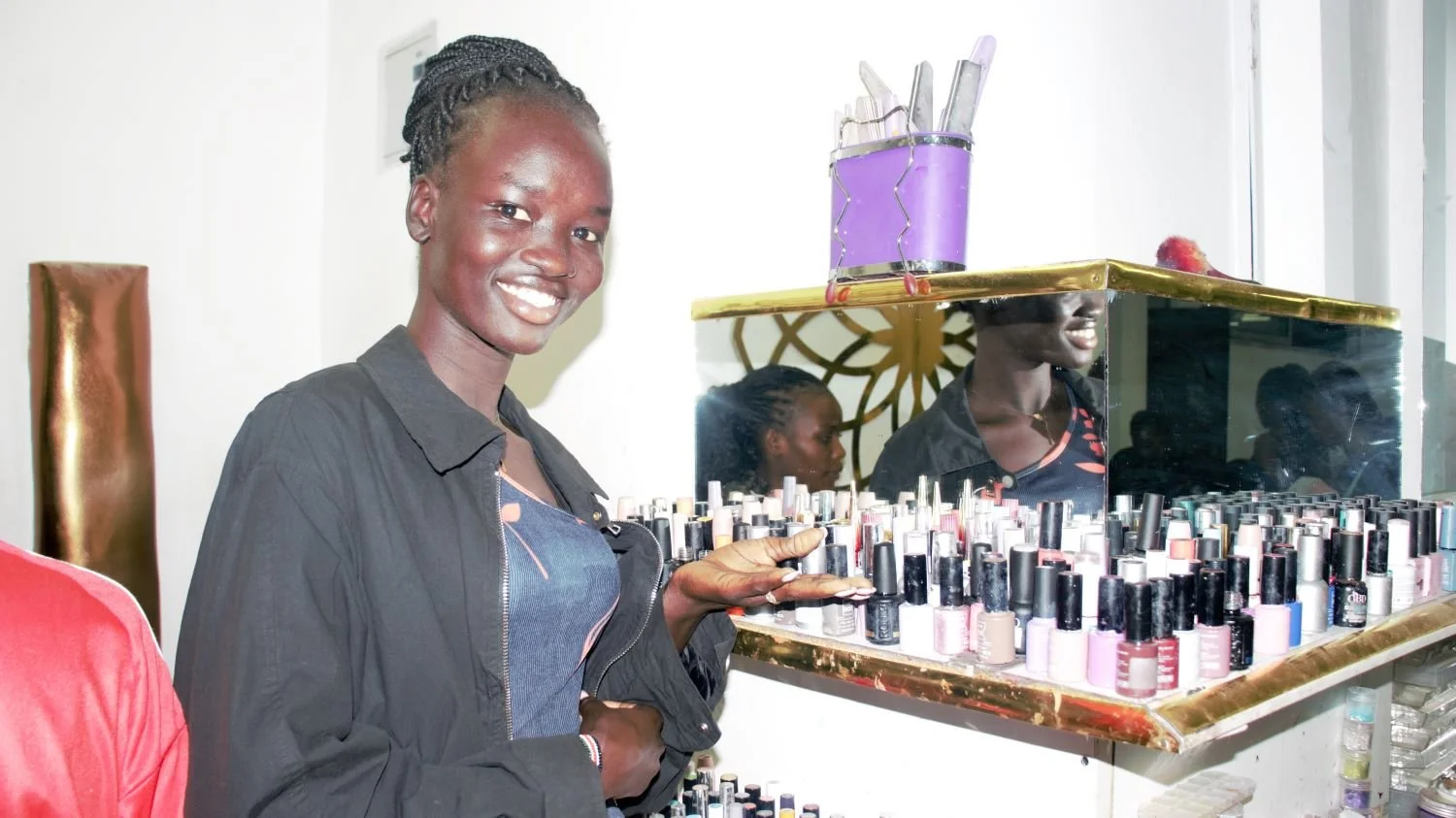 Through the training, Amach learned nails, makeup, and salon professionalism. She now understands how profitable the beauty industry is and sees how her skills—from hair to nails—can earn her a sustainable income. “Most ladies like to look good,” she says with a confident smile. “And now I can make that happen.”